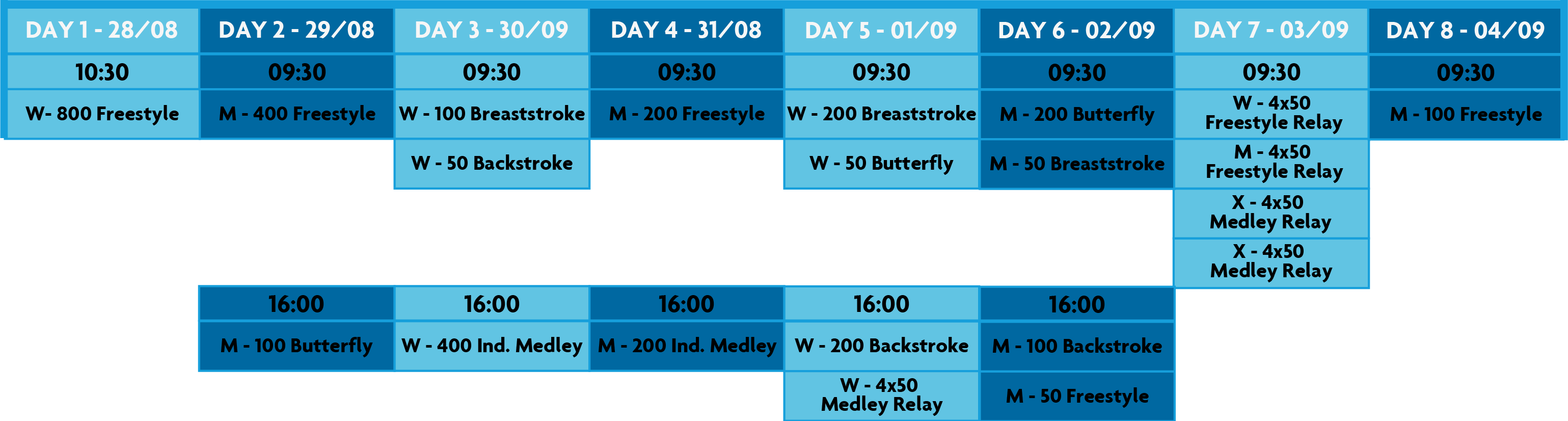 W = WOMEN M = MEN X = MIXED